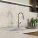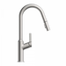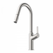 The Okab kitchen faucet has a pull-down spout with a classic curved design. Its architectural curve reaches forward for a modern, minimalist look. Made with the highest quality components and exceptional German craftsmanship, it delivers precision performance every time. Standing at just 15.94 inches tall with a 360° swivel, the pull-down spout has an impressive range of motion, making it easy to fill and clean pots and pans. The ceramic cartridge delivers smooth, quiet operation and the spray head features two spray modes: a powerful stream for thorough cleaning and a gentle spray specifically designed for more delicate tasks. The flawless brushed nickel finish has a PVD coating that is durable, extremely scratch-resistant, and easy to clean.