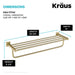With clean lines and subtle curves, KRAUS Ventus bathroom accessories create the perfect finishing touch for any bathroom decor. Constructed from solid brass for maximum durability, this bathroom shelf is a convenient way to store toiletries and accessories while freeing up space on the bathroom vanity or countertop. A built-in towel bar allows you to hang towels and wash cloths. 25-inch length makes a perfect fit for both small and large bathroom spaces. Available in a range of wear-resistant finish options to complement your bathroom hardware and other accessories. KRAUS offers coordinating accessories, including towel bars, towel rings, toilet paper holders, and bathroom shelves, to create a cohesive look in a master bath or powder room. Instructions and all mounting hardware included.