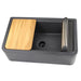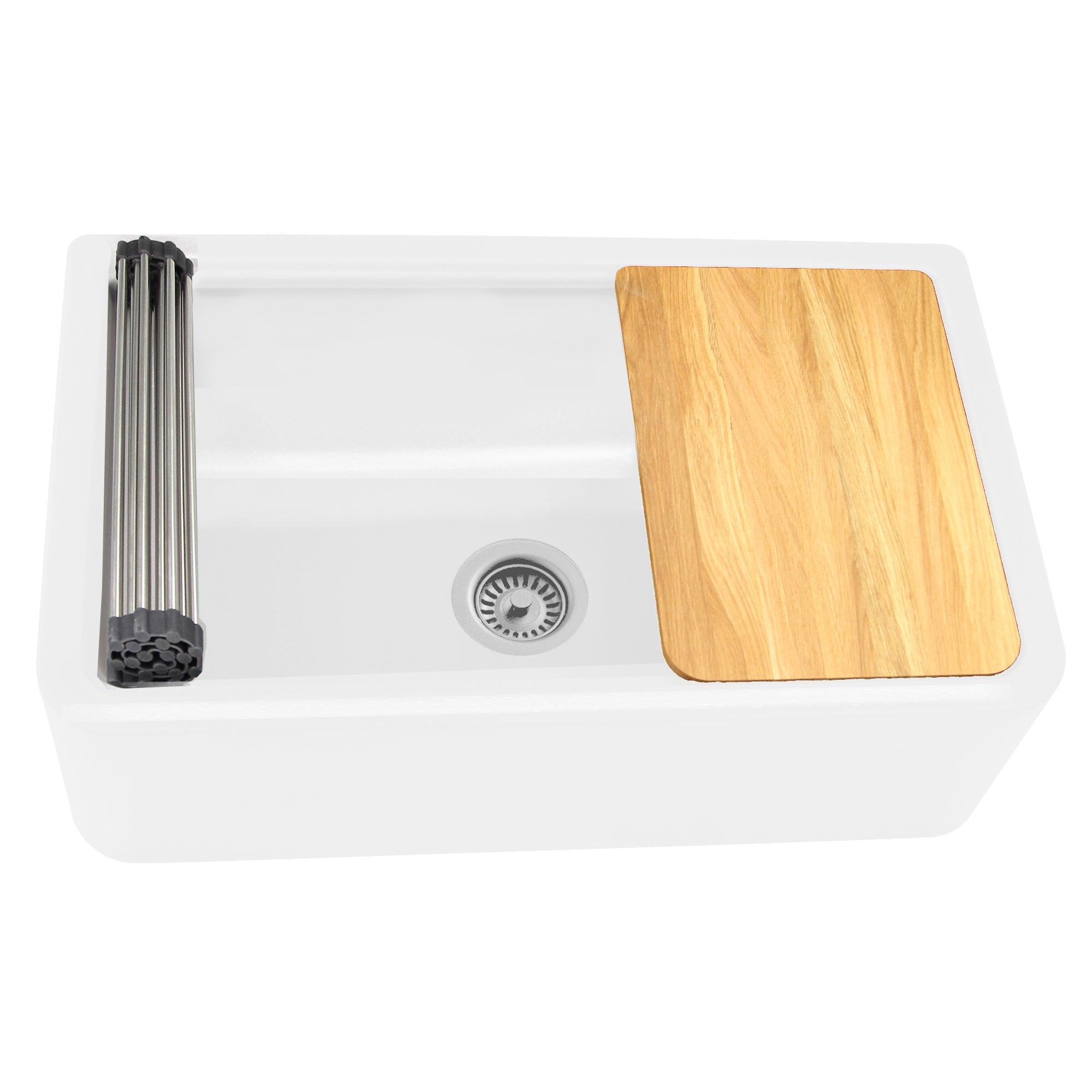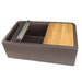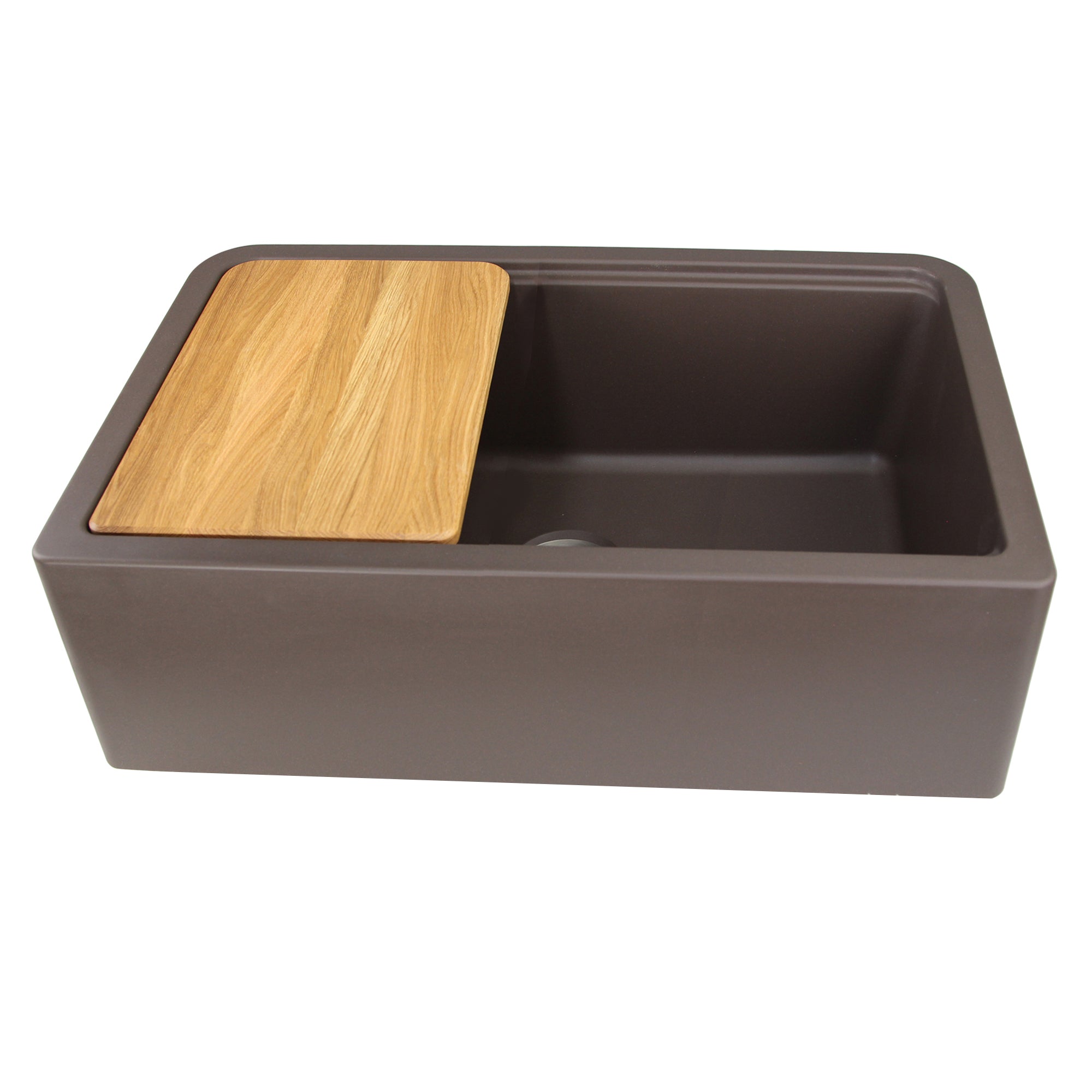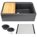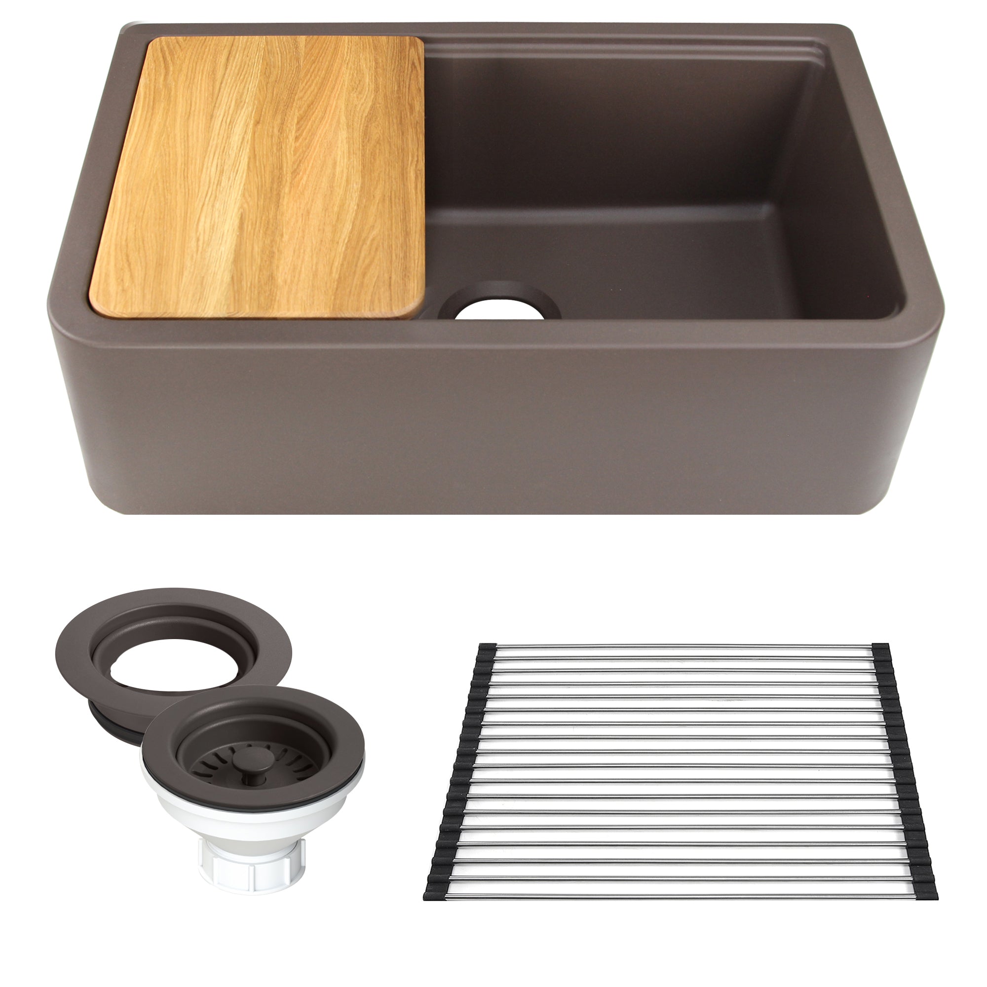 This sink is designed for maximum function. A true granite composite farmhouse workstation sink with a built-in ledge. Comes with an included stainless steel roll up mat and wood cutting board that fit right on the ledge so you can do your tasks over the sink! This 33-inch apron sink also comes with a color-coordinated decorative disposal flange trim and basket strainer drain.