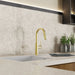The Rana Prep faucet has a pull-down spout with a classic curved design. Its architectural curve reaches forward for a modern, minimalist look. Made with the highest quality components and exceptional German craftsmanship, it delivers precision performance every time. Its space-saving design features a vertical handle that swings forward 90 degrees, eliminating the need for a full 180-degree rotation. And with a 360° swivel spout standing 13.98 inches tall, it’s perfect for prep sinks, wet bars, and corner sinks. The ceramic cartridge delivers smooth, quiet operation and the spray head features two spray modes: a powerful stream for thorough cleaning and a gentle spray specifically designed for more delicate tasks. The flawless brushed gold finish has a PVD coating that is durable, extremely scratch-resistant, and easy to clean..