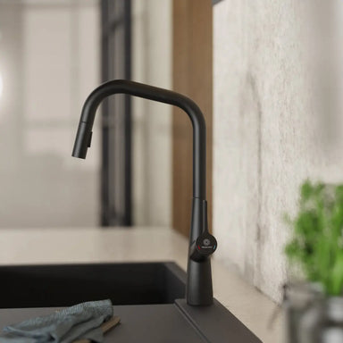 KRAUS Torak Single Handle Pull Down Kitchen Faucet in Matte Black with Brushed Brass