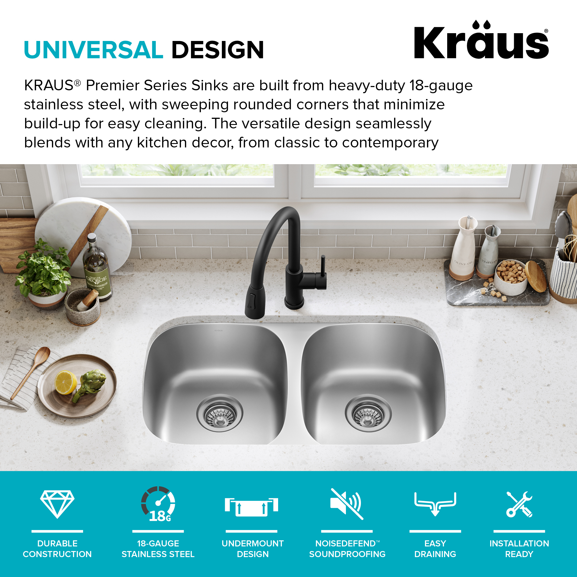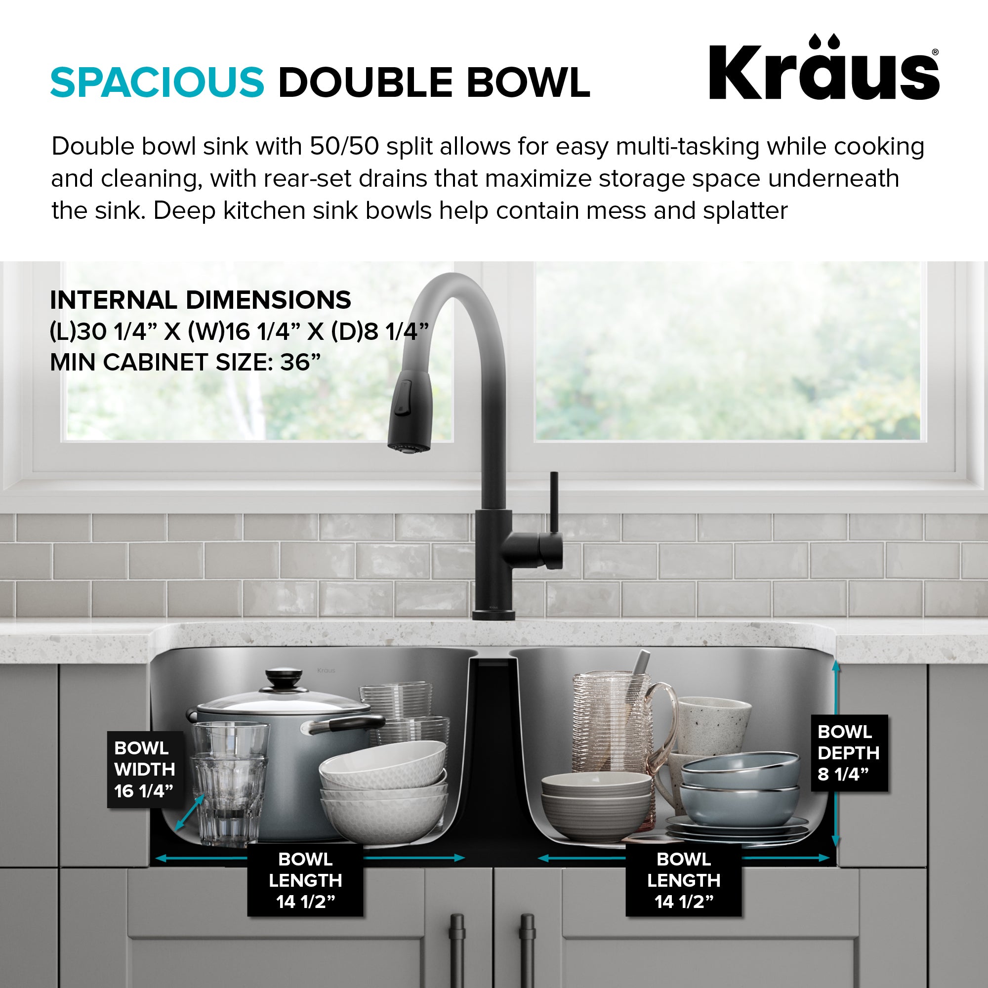 KRAUS 32" Undermount 50/50 Double Bowl Stainless Steel Kitchen Sink