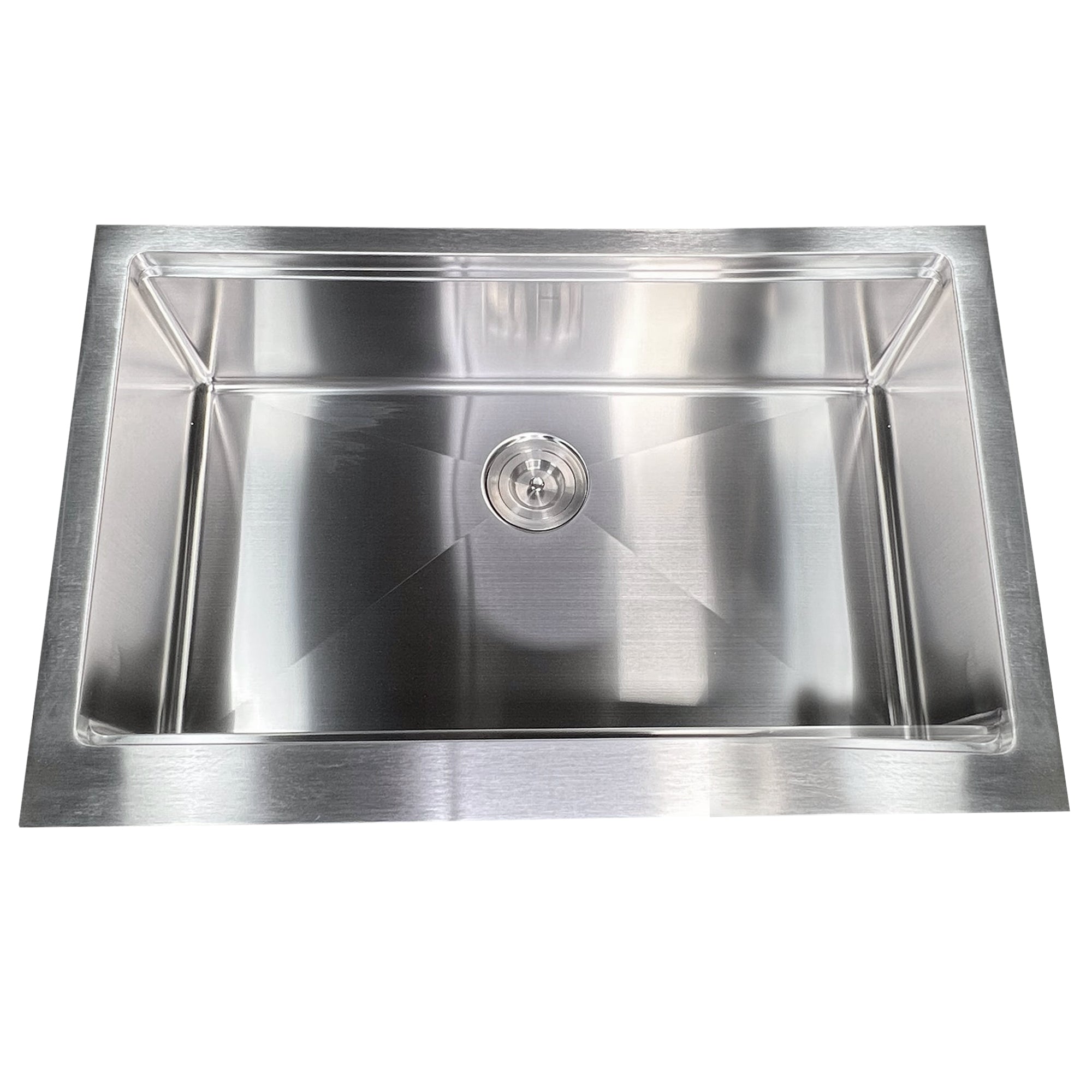 - This sink is crafted from 304 stainless steel in a lustrous satin finish.
