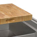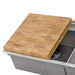 This 2-inch thick END-GRAIN solid hardwood butcher block from Ruvati is the ultimate companion for your culinary experience. Sized to fit perfectly and slide on the built-in ledges of your Ruvati workstation sinks. In dual-tier workstation sinks, it fits on both the upper and lower tiers. End-grain means the board is made of short pieces of wood standing on their end (vertically instead of sideways). This gives a beautiful checkered finish, and a cutting surface that is strong and durable. The surface is made of the fibrous ends of the wood, and with every blow the knife slide between the wood fibers. This helps keep your knives sharper and makes your chopping a pleasure. You can use this butcher block by itself on top of your counter, or if you have Ruvati workstation sink, it sits and slides conveniently on top of your sink.